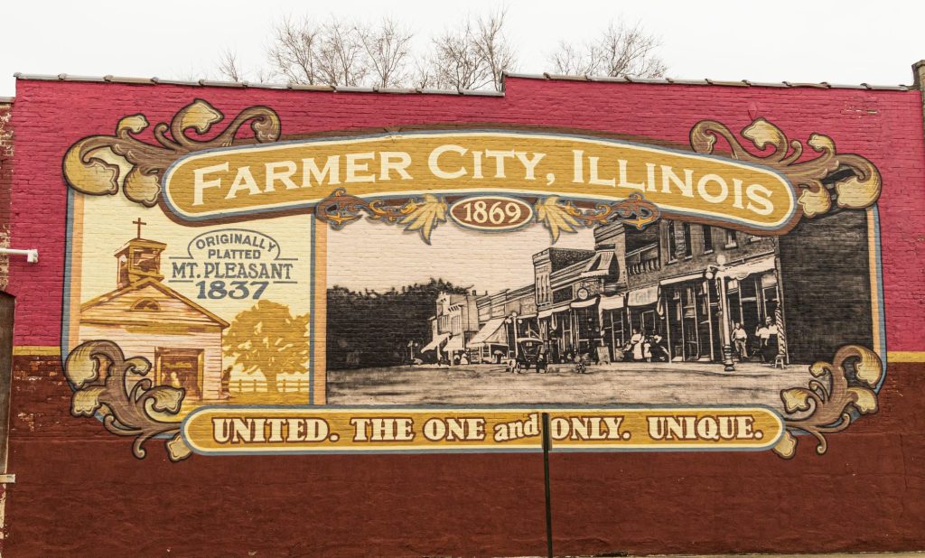 Farmer City started as Mt. Pleasant, but when mail delivery service started in 1837 – the area adopted the name Santa Anna because there was already a Mt. Pleasant, Illinois. Because the name “Santa Anna” was adopted for mail delivery purposes only, it was decided in 1869 that the town needed an official name… thus… the name Farmer City was born and has remained one of a kind ever since.