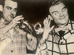 George Rock (on the left in this photo) was a native of Farmer City. He played trumpet and sang with Spike Jones and His City Slickers. George Rock was well known for his lead vocals on the song “My Two Front Teeth,” a Christmas classic. Check it out below!